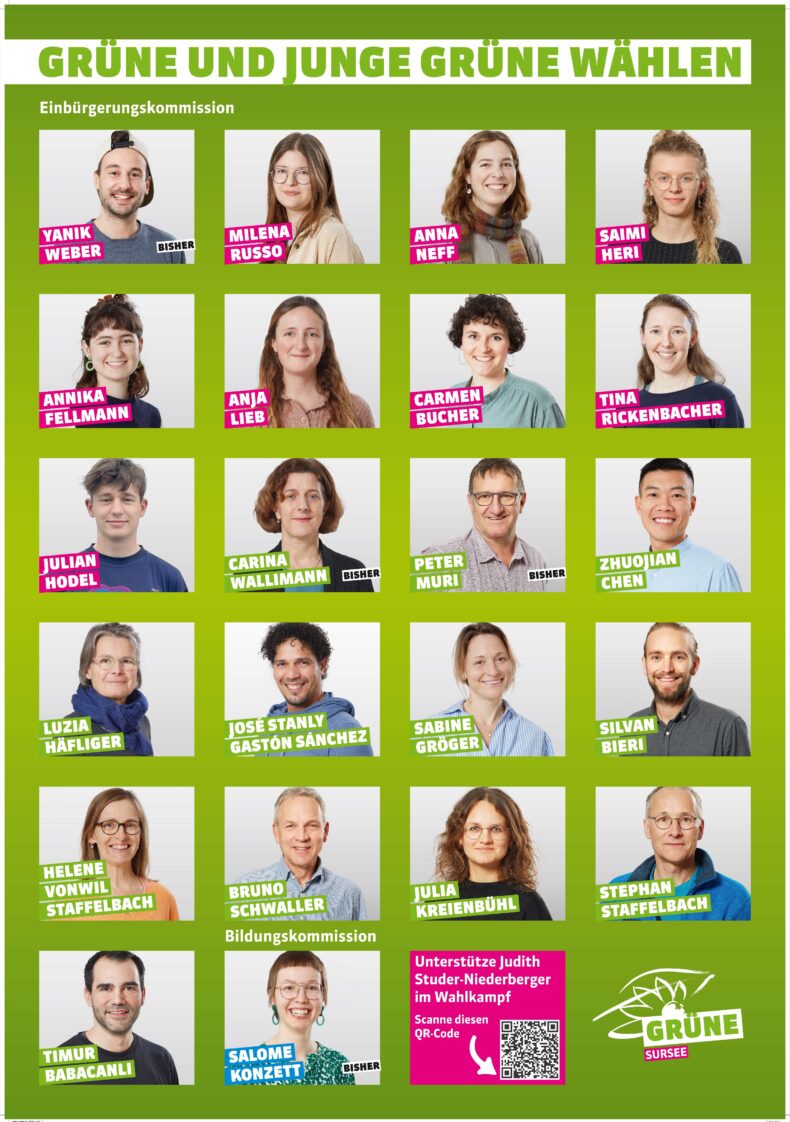 Insgesamt für die Einbürgerungskommission konnte die Grüne Partei (inklusive junge Grüne) 21.8% der Stimmen holen und bleibt die zweitstärkste Kraft in Sursee!