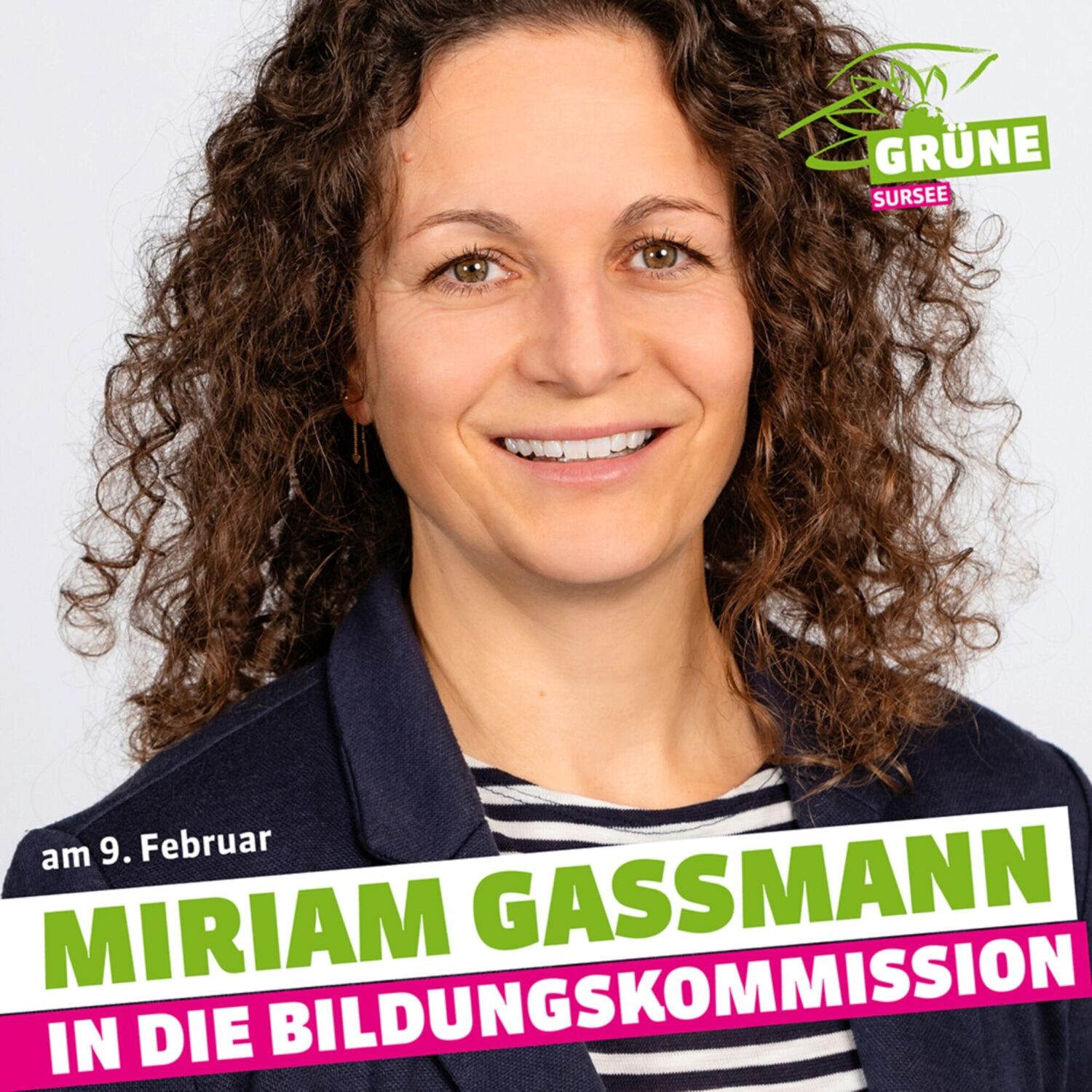 Miriam Gassmann, Schulische Heilpädagogin MA, Primarlehrerin, Schulcoach und Mutter, am 09. Februar in die Bildungskommission wählen.